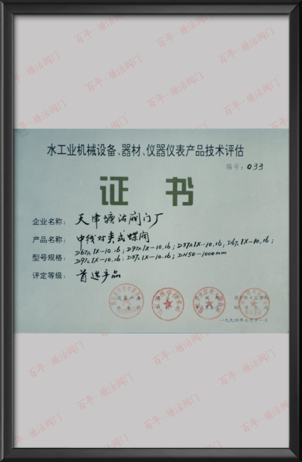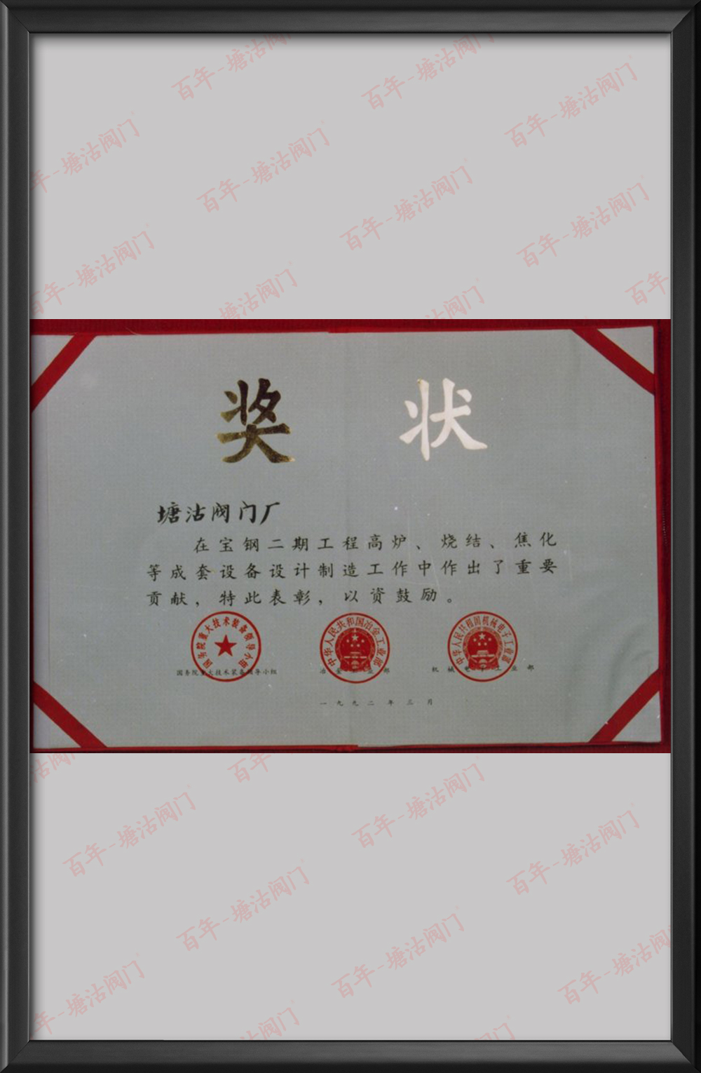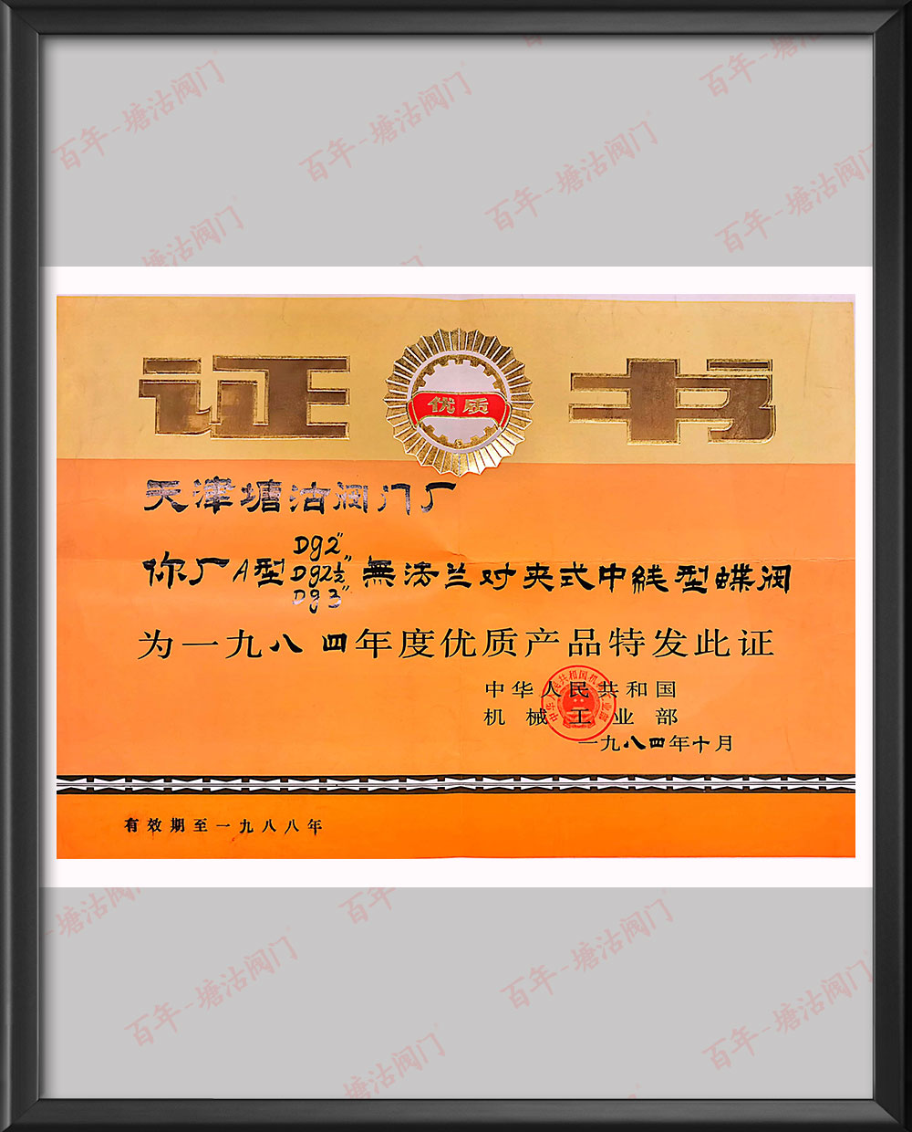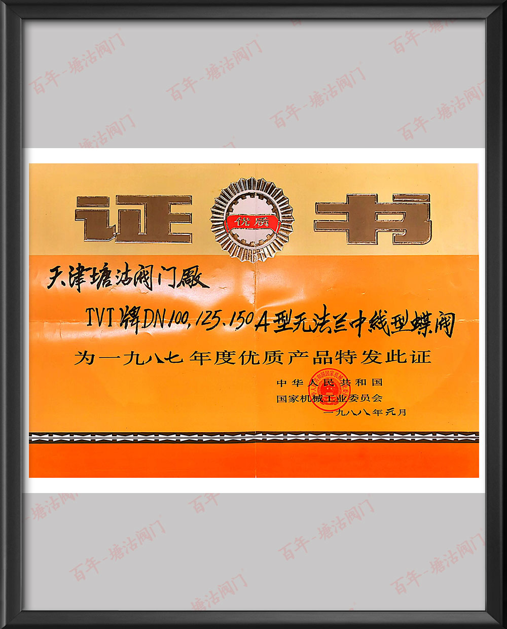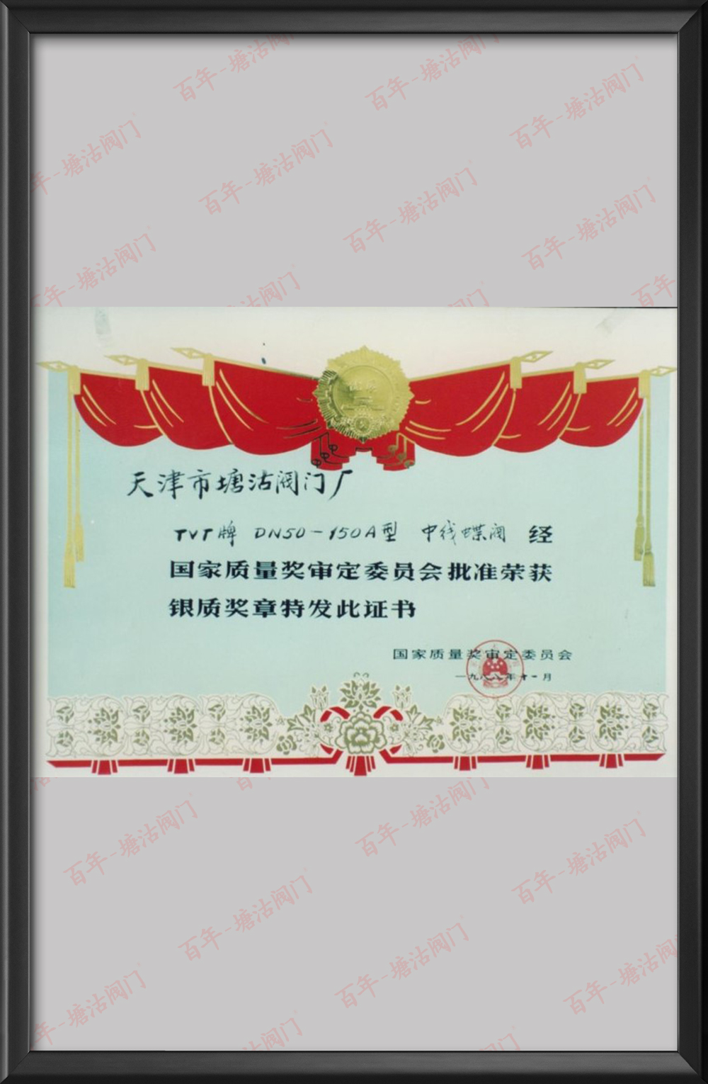 1988年DN50-150A型中線蝶閥銀質(zhì)獎(jiǎng)?wù)?/h3>