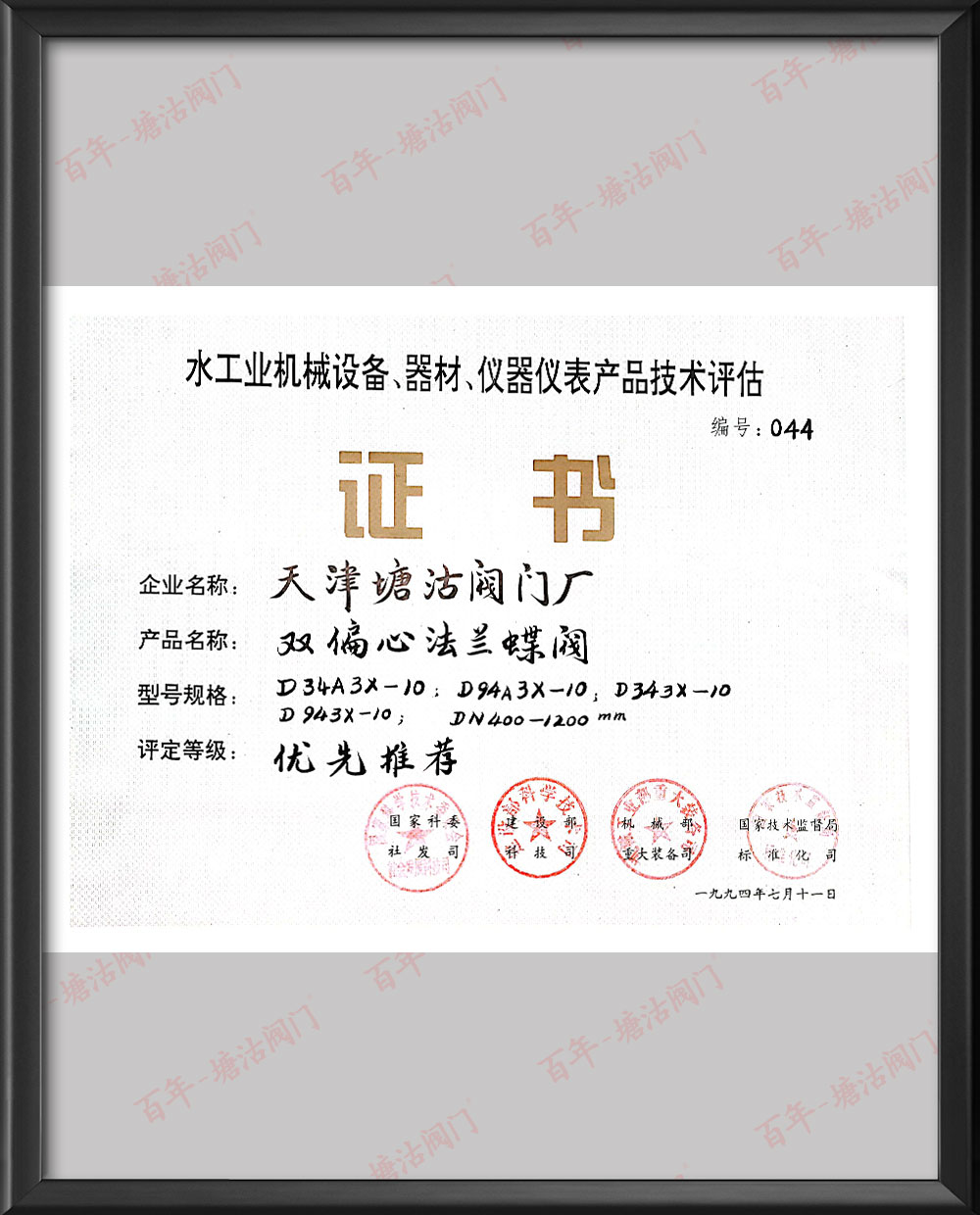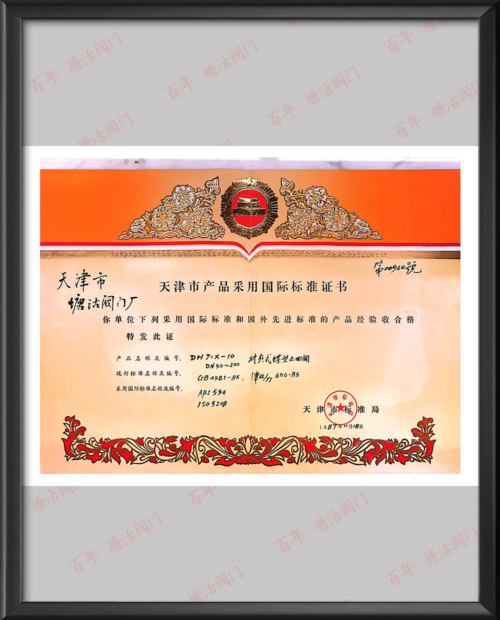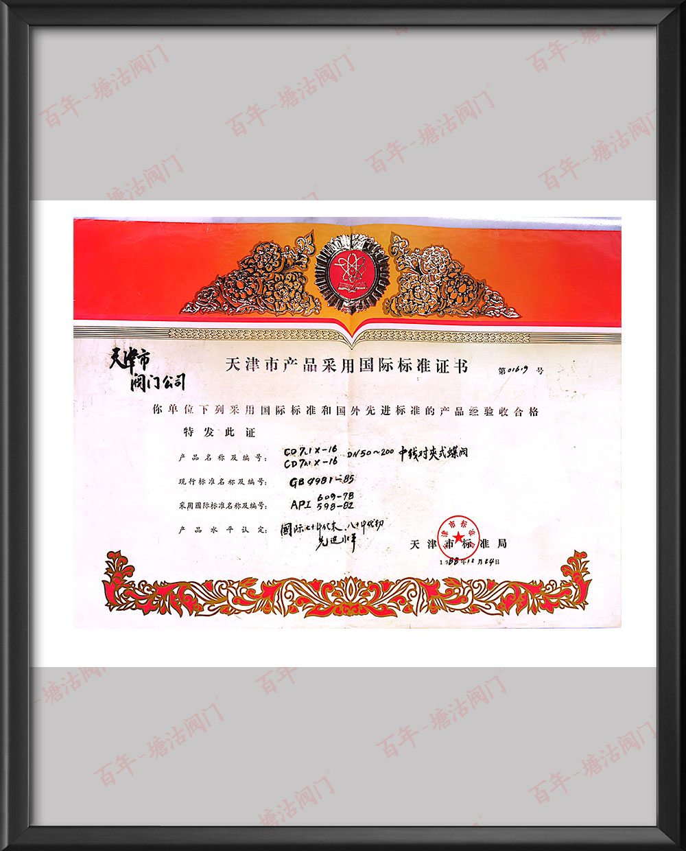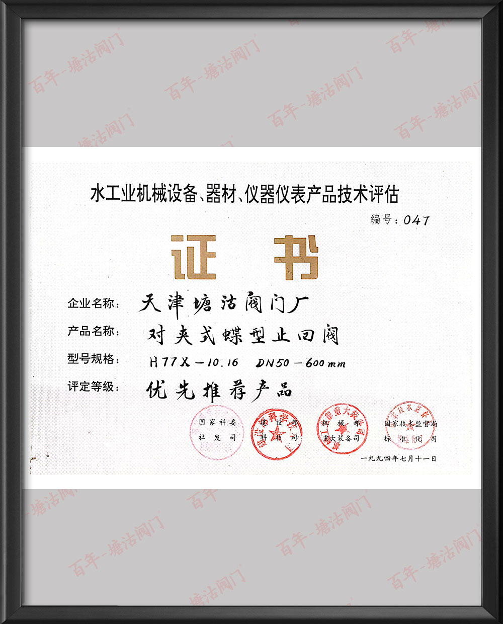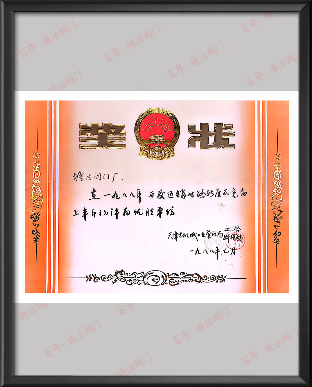 1988年DN50-150A型中線蝶閥銀質(zhì)獎(jiǎng)?wù)?/h3>